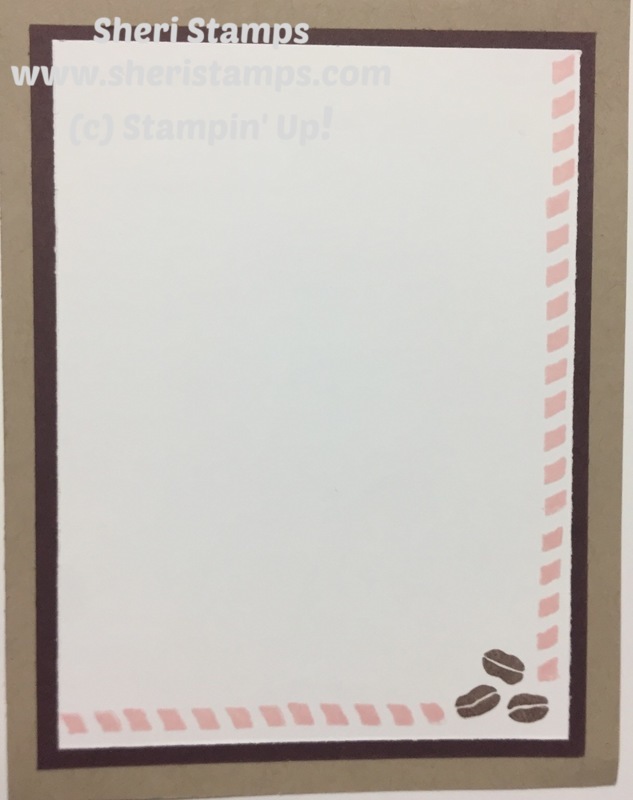 I had so much fun designing this next card. It was almost like playing paper dolls. LOL. The Coffee Cafe Bundle is so cute. I also used the new Stampin’ Up! Embossing Paste. OMG it is fun to work with. I used it to make a brick wall effect on my card. I mixed it with my Chocolate Chip Reinker. It gives so much texture to the card. I also created my own Designer Series Paper. I forgot to order the Coffee Break DSP and loved the coffee stain sheet. So I took out my Timeless Textures Stamp Set and made it myself. I think it turned out pretty good.