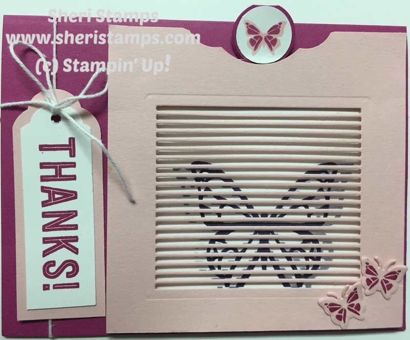 This next card was inspired by fellow Stampin’ Up! Demonstrator Linda Parker . I just switched the color to Berry Burst. This card was so simple to do, but it really has a wow factor.