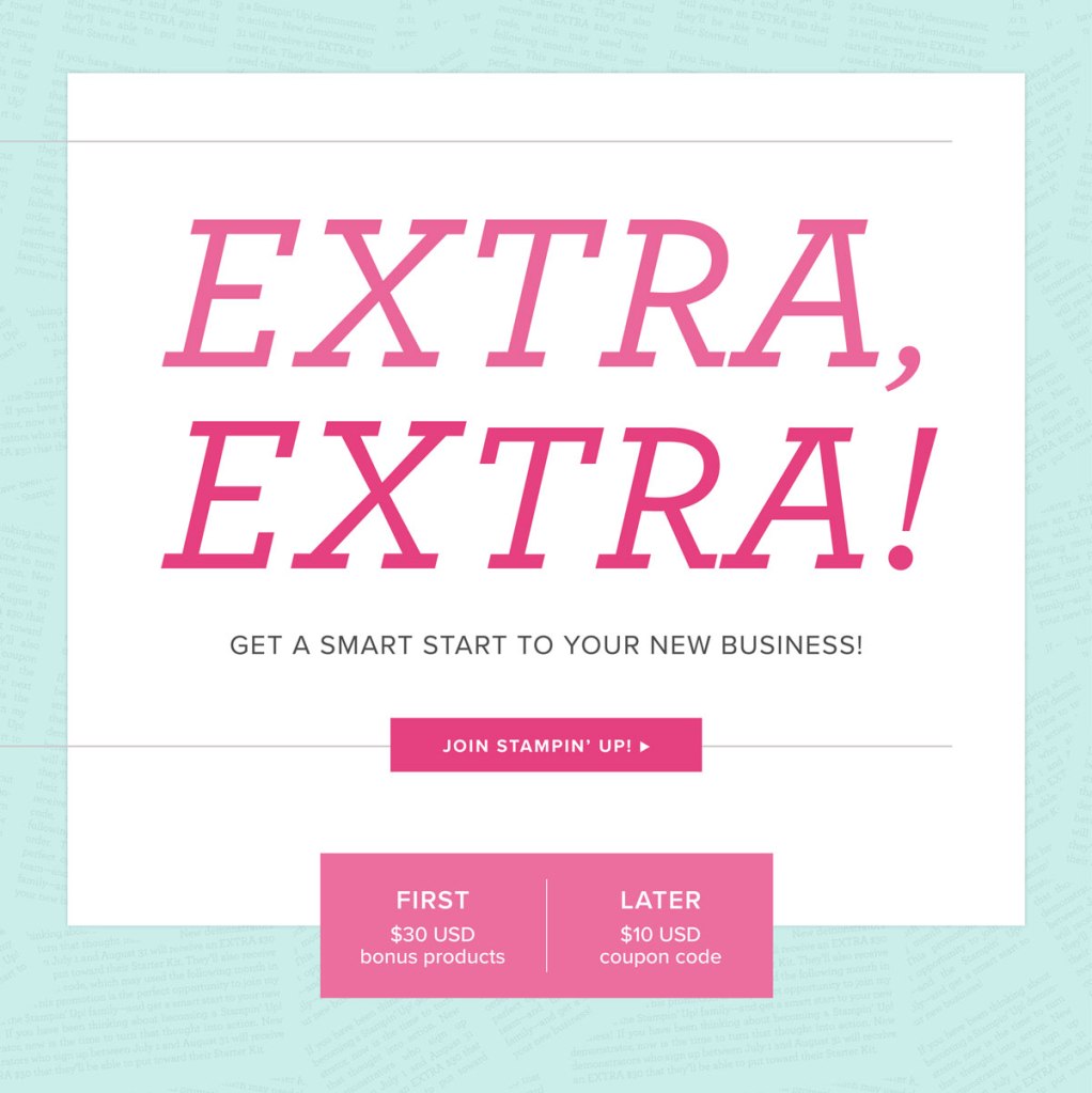 They’ll also receive an EXTRA $10 coupon code, which may used the following month in their next order. This promotion is the perfect opportunity to join my team—and the Stampin’ Up! family—and get a smart start to your new business!
